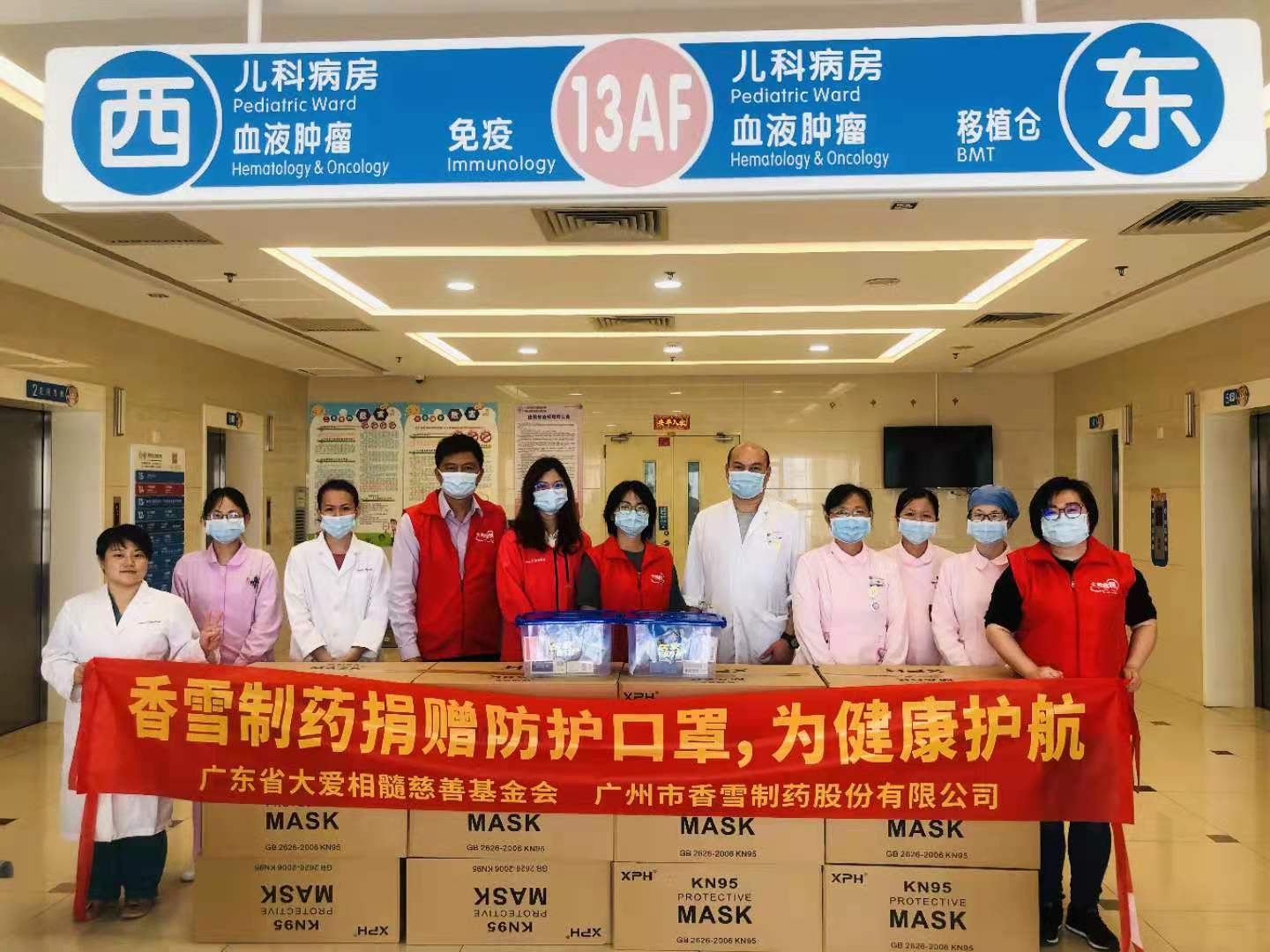 3月26日,通过广州市大爱相髓慈善基金会向广州市妇女儿童医疗中心捐赠20000只防护口罩,提供给血液肿瘤科的医护人员及与病魔斗争的患者家属使用。