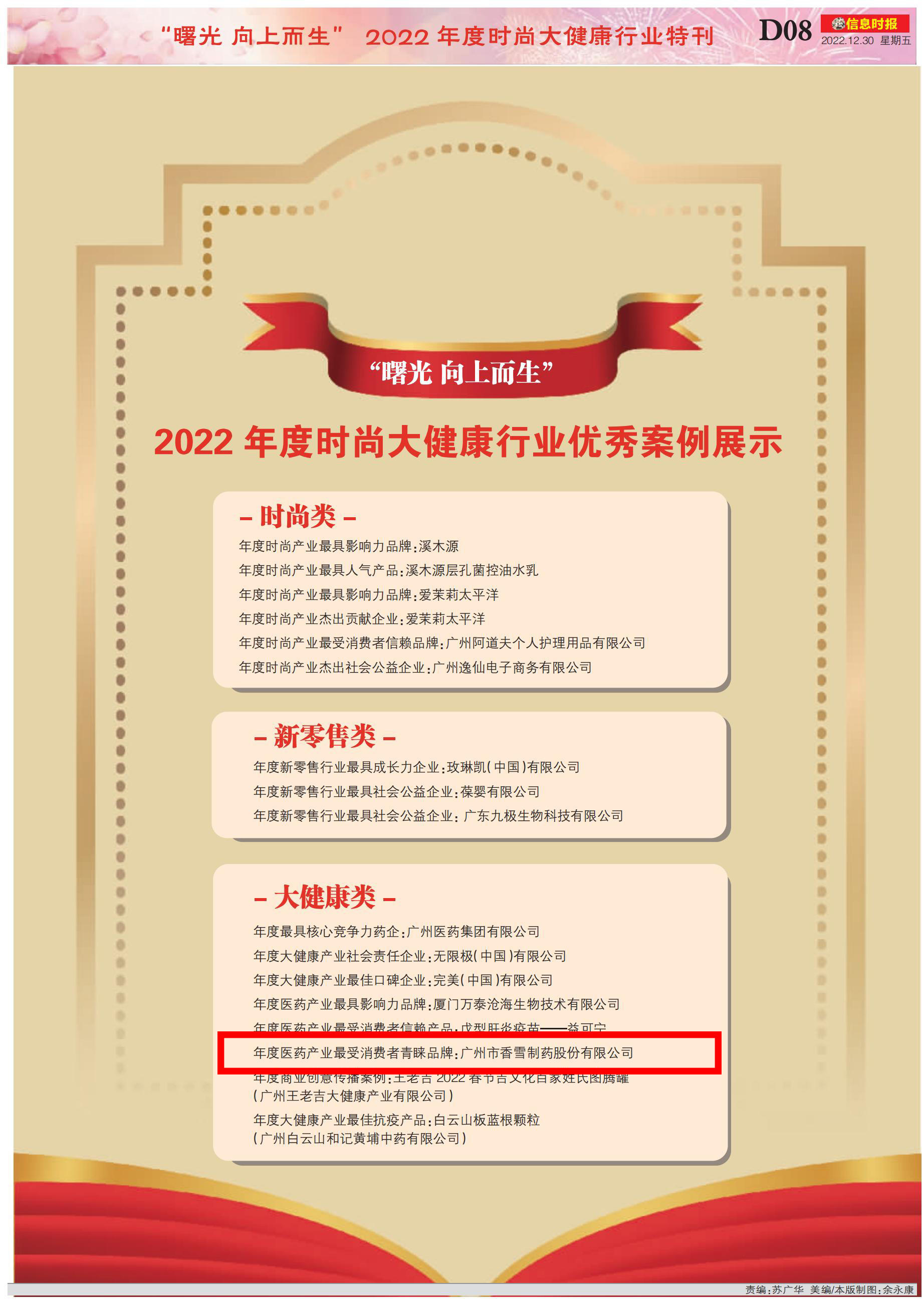 12月29日,ylzz总站线路检测中心在2022年度新风尚·健康行行业评选活动中荣获“年度医药行业最受消费者青睐品牌奖”。