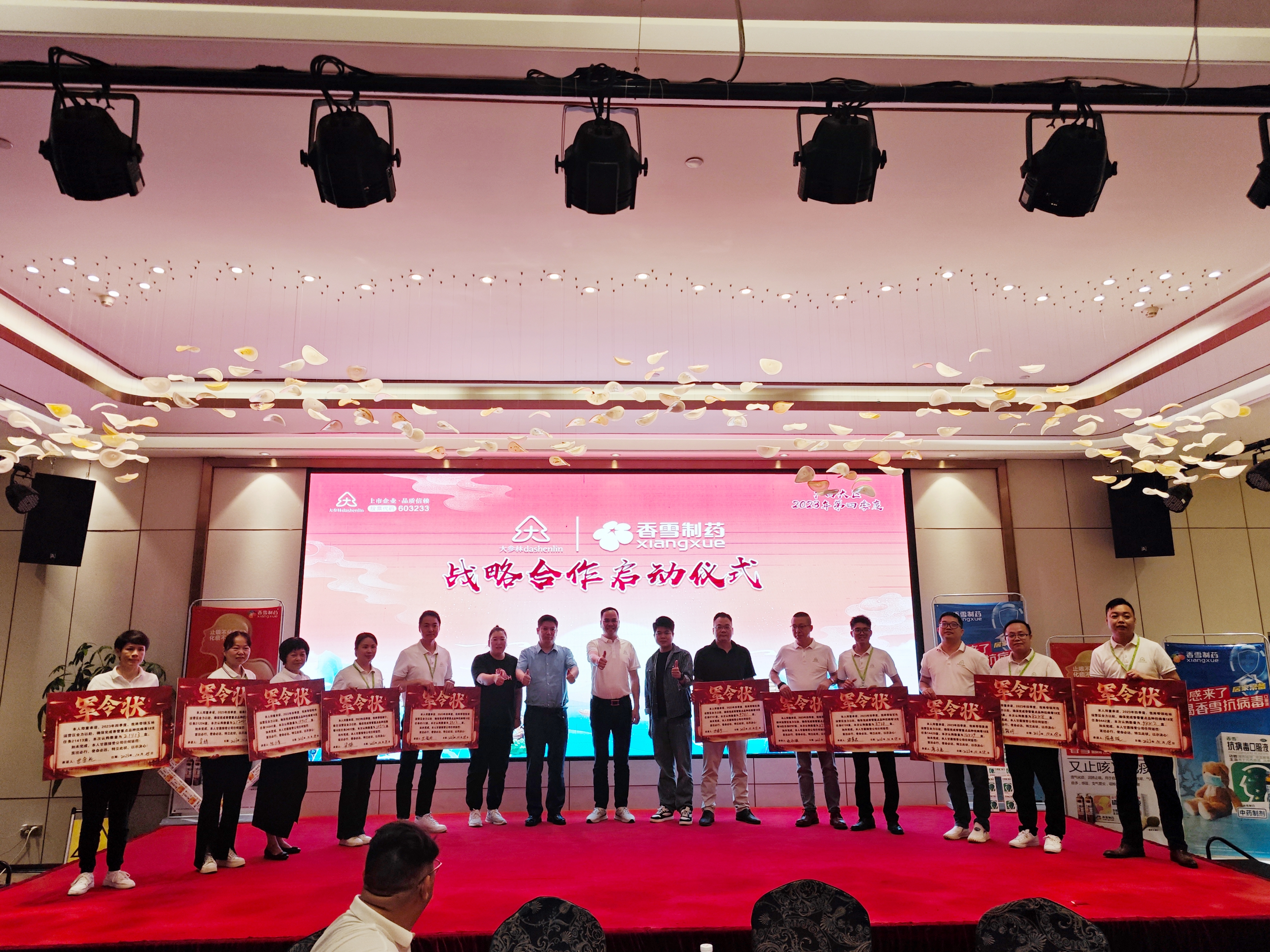 签约仪式后,在大参林医药集团营运总裁陈洪的带领下,广西大参林11大区负责人共同上台签署军令状。未来,ylzz总站线路检测中心将携手大参林团队,持续深化合作,以优质的产品以及专业的服务,为连锁终端赋能,共赢未来。