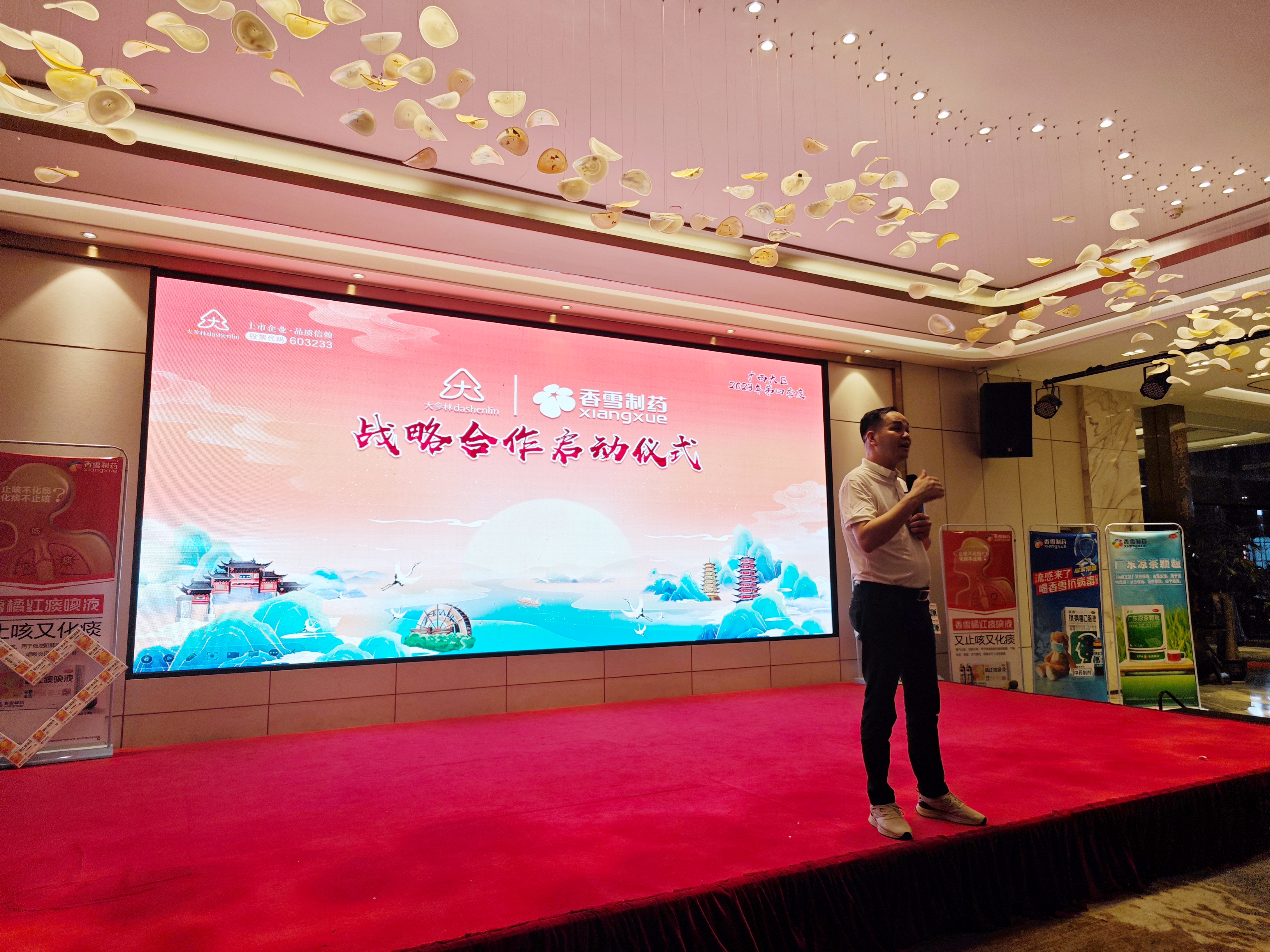 大参林医药集团营运总裁陈洪首先发表致辞,他肯定了双方在过去合作中所取得的优异成绩,并对ylzz总站线路检测中心团队高效的执行力给予高度认可。同时,对于2023年第四季度双方携手共创更高的合作业绩深表信心,期望共同做大ylzz总站线路检测中心品类市场,争取创造更优业绩。
