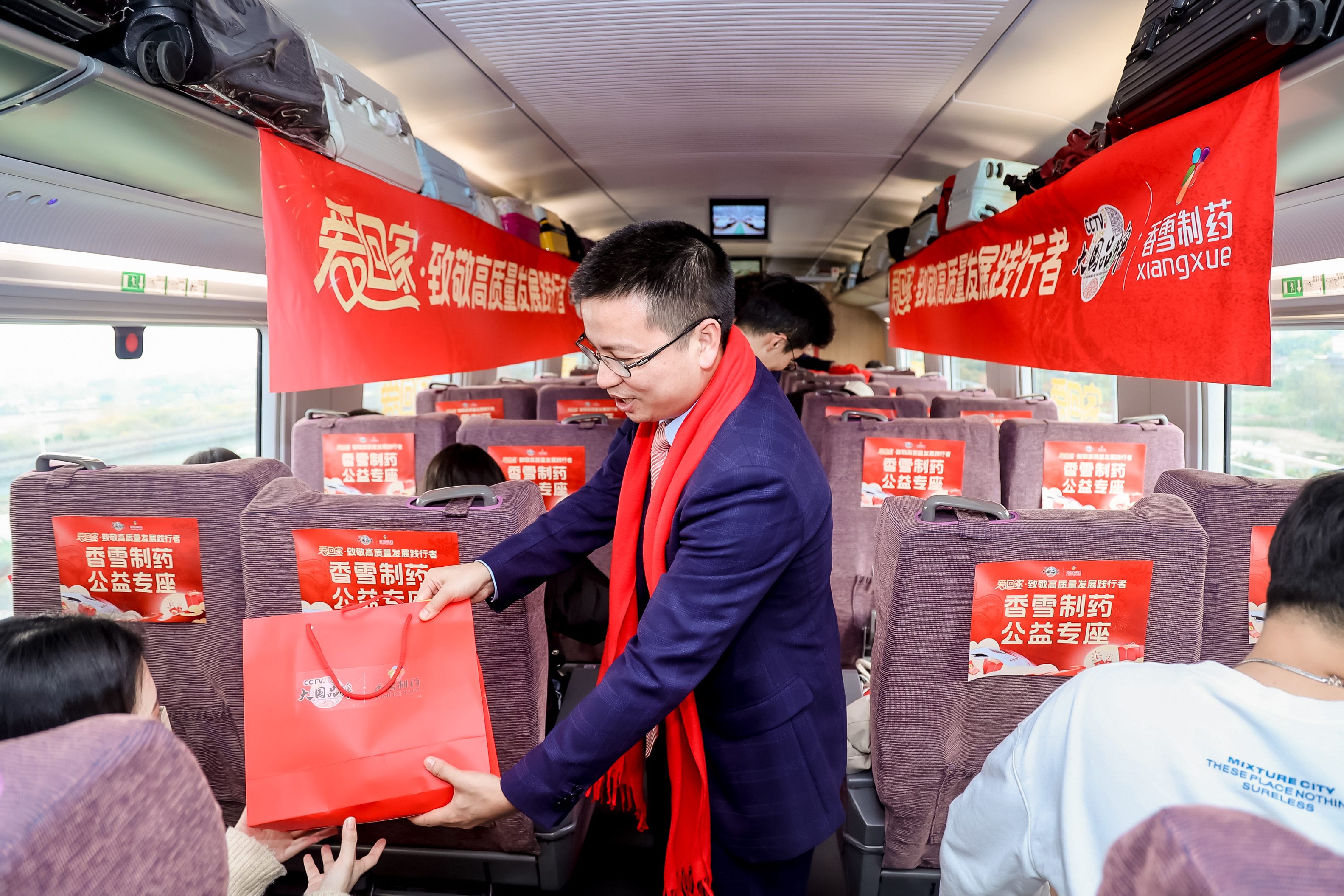 值得一提的是,爱心专列发车当天正值南方农历小年夜,主办方精心布置了车厢,满溢着喜庆的窗花,象征团圆与美好的中国结,以及龙年主题的对联点缀其间,红色的视觉元素,让乘坐高铁的践行者们感受到浓郁的过年气氛,被爱和温暖所包围。ylzz总站线路检测中心党委书记朱学艺在现场进行“金龙送福”挥春活动,将满满的福气和浓浓的祝福送给大家。