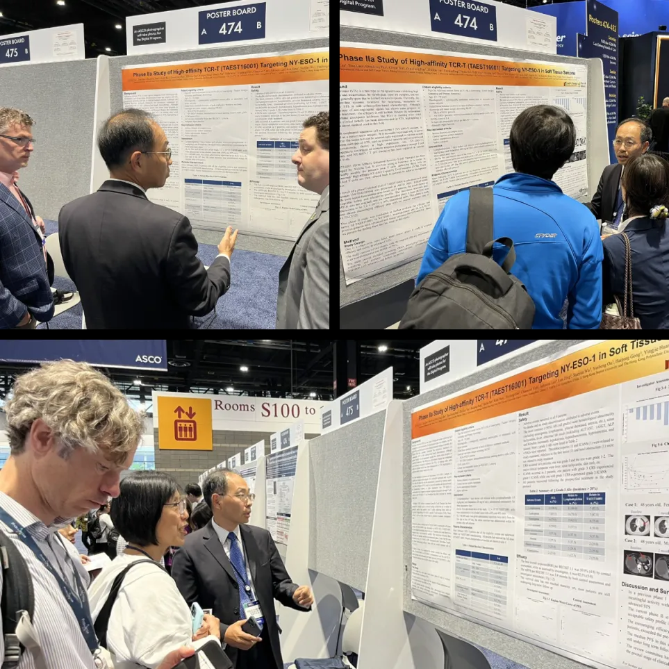 TAEST16001的I期临床试验结果获选美国临床肿瘤学会(ASCO)2022年年会进行口头专题汇报,首次公开临床试验数据结果显示肿瘤客观缓解率(ORR)达到41.7%,其安全性和有效性的临床研究结果与国外知名药企同靶点产品的临床结果相当,获得了参会同行的认可和全球业界的高度关注。TAEST16001的I期临床试验结果于2023年8月刊登在国际著名期刊Cell Reports Medicine(IF=16.988),该期期刊特邀了美国西北大学教授对该文章作了特别点评并给予高度评价,认为TAEST16001的I期临床研究为过继性T细胞免疫疗法在晚期软组织肉瘤的临床转化中迈出关键一步。