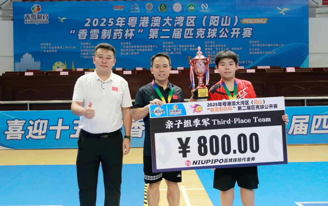 “今天拿到亲子赛比赛冠军特别开心。这是我和儿子第一次携手参加这类匹克球亲子赛事,原本只是想体验一下,没想到能站上领奖台。”谈及夺冠感受,“熊出没”队的参赛选手熊举难掩眼底的激动与笑意,“比赛里的每一次配合、每一次冲刺,不仅让我们锻炼了身体,更像是给父子俩的感情加了温——现在感觉和儿子的心贴得更近了。阳山的赛事氛围特别好,希望以后能有更多这样的机会,带孩子再来这里感受比赛的快乐。”