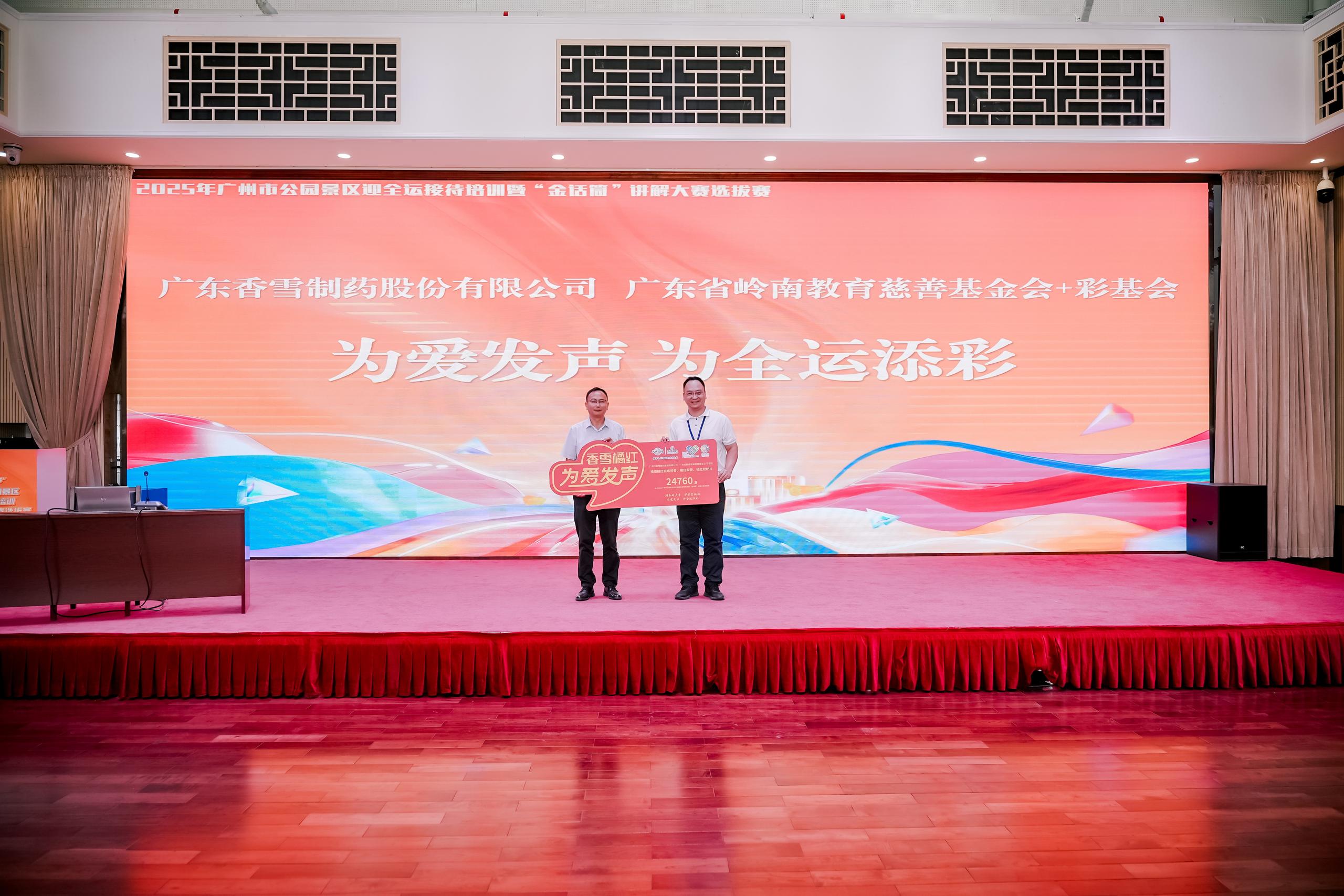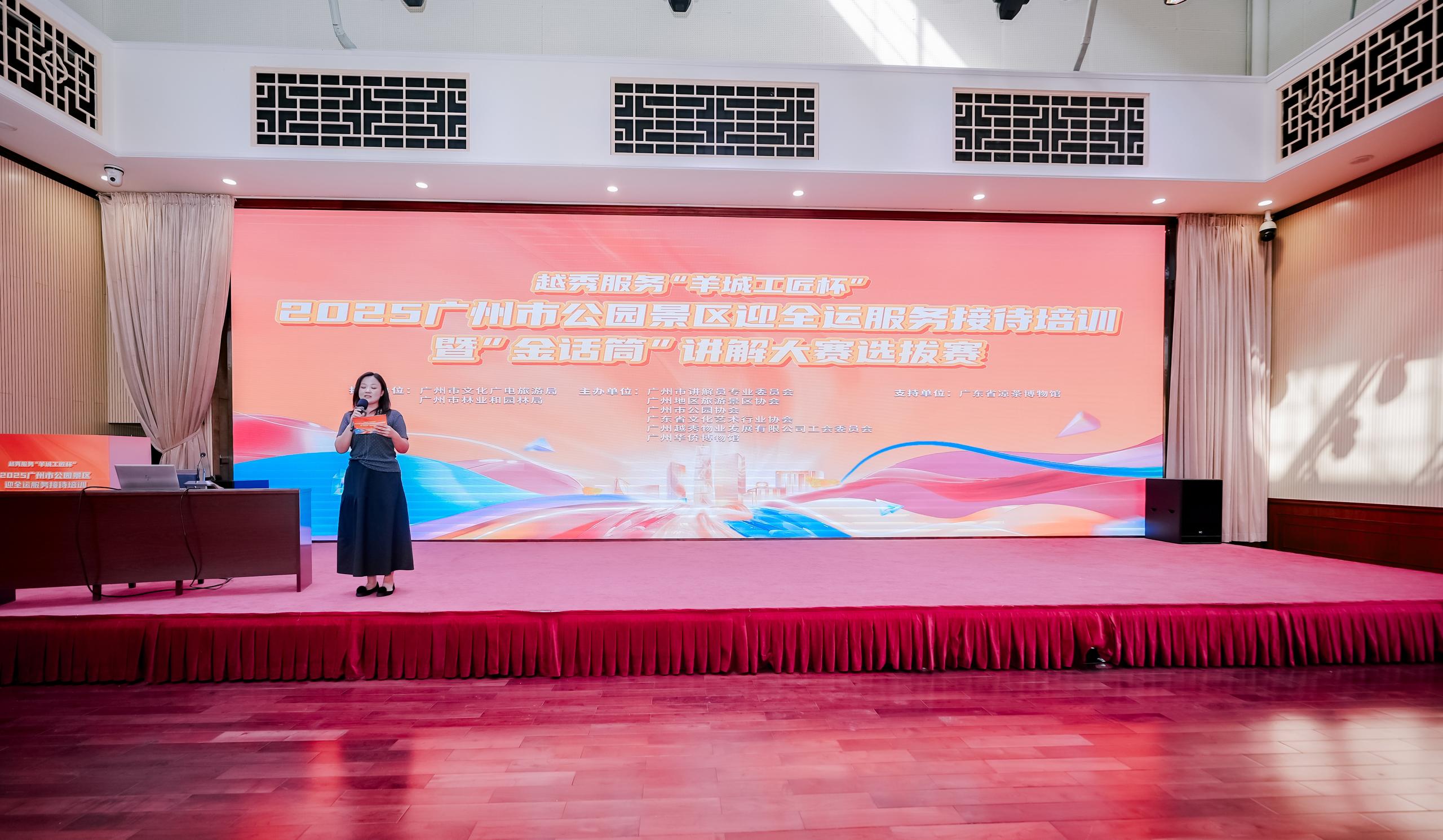 10月14日,2025广州市公园景区迎全运服务接待培训暨“金话筒”讲解大赛选拔赛在广州华侨博物馆隆重举行。本次活动在广州市文化广电旅游局、广州市林业和园林局的指导下,由广州地区旅游景区协会、广州市公园协会、广州市讲解员专业委员会、广州越秀物业发展有限公司广州分公司及广州华侨博物馆联合主办,并得到广州市ylzz总站线路检测中心股份有限公司、广东省凉茶博物馆的鼎力支持。赛场上,选手们用声音展现广州魅力;与此同时,一场爱心捐赠也在同步进行。