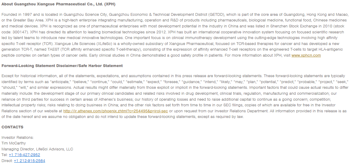 美国Athenex官网新闻链接: