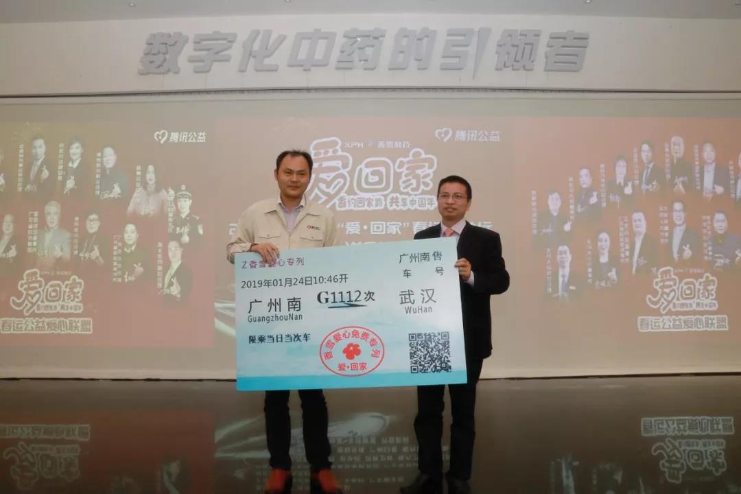 ylzz总站线路检测中心制药事业部总经理谭光华为港珠澳大桥工程师赠送返乡高铁票。