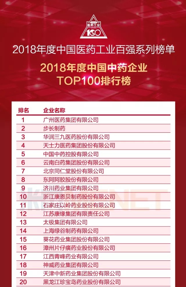 该榜单分为“2018年中国化药企业TOP100”等5大子榜单。其中,恒瑞医药、扬子江药业、上药集团位列化药企业前三甲;广药集团、步长制药、华润三九位列中药企业前三甲。CRO(含CDMO)榜单的前三名为药明康德、药明生物、泰格医药;医疗器械(含IVD)榜单前三名为迈瑞医疗、联影医疗、乐普医疗;百济神州、长春高新、信达生物位列生物医药(含血液制品、疫苗、胰岛素等)前三甲。