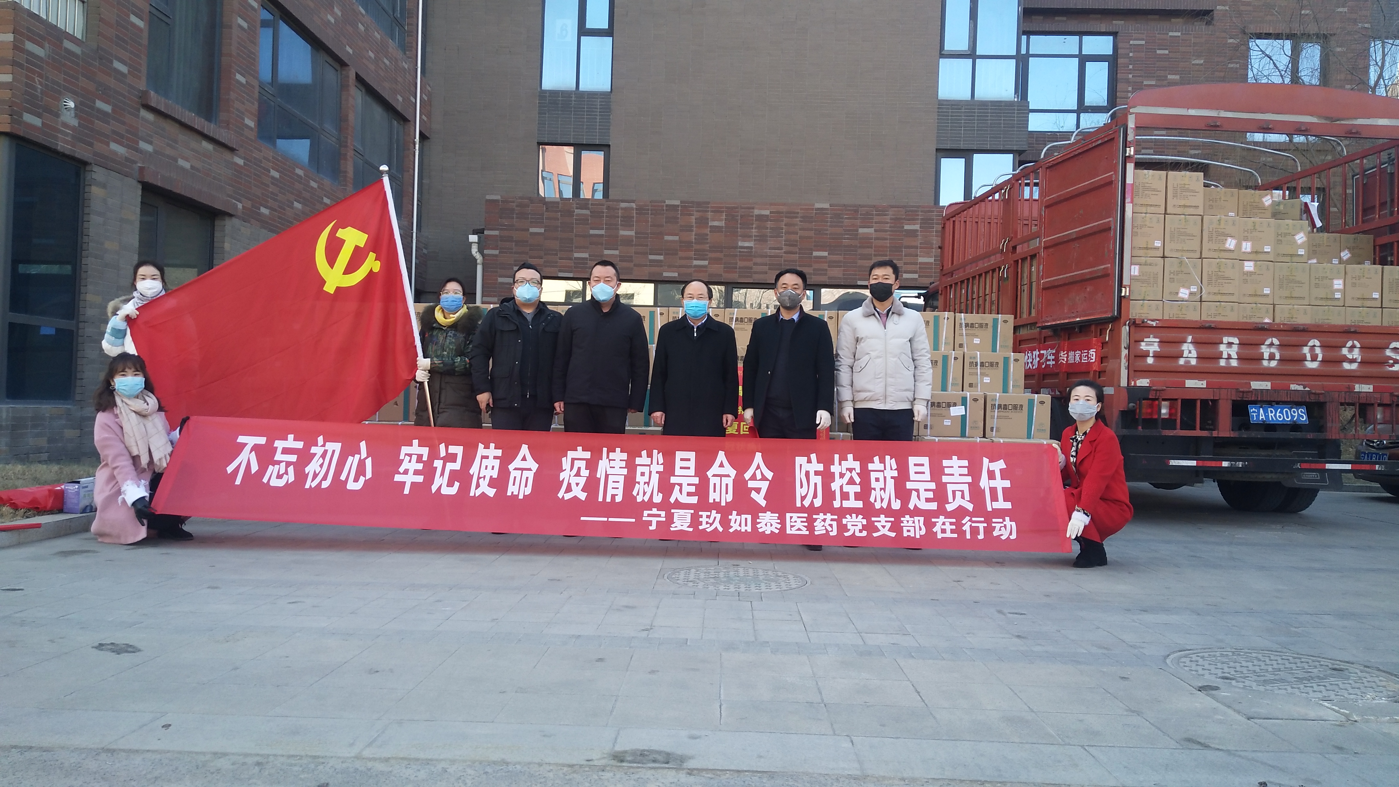 本次捐赠活动也得到宁夏玖如泰医药党支部的大力支持。