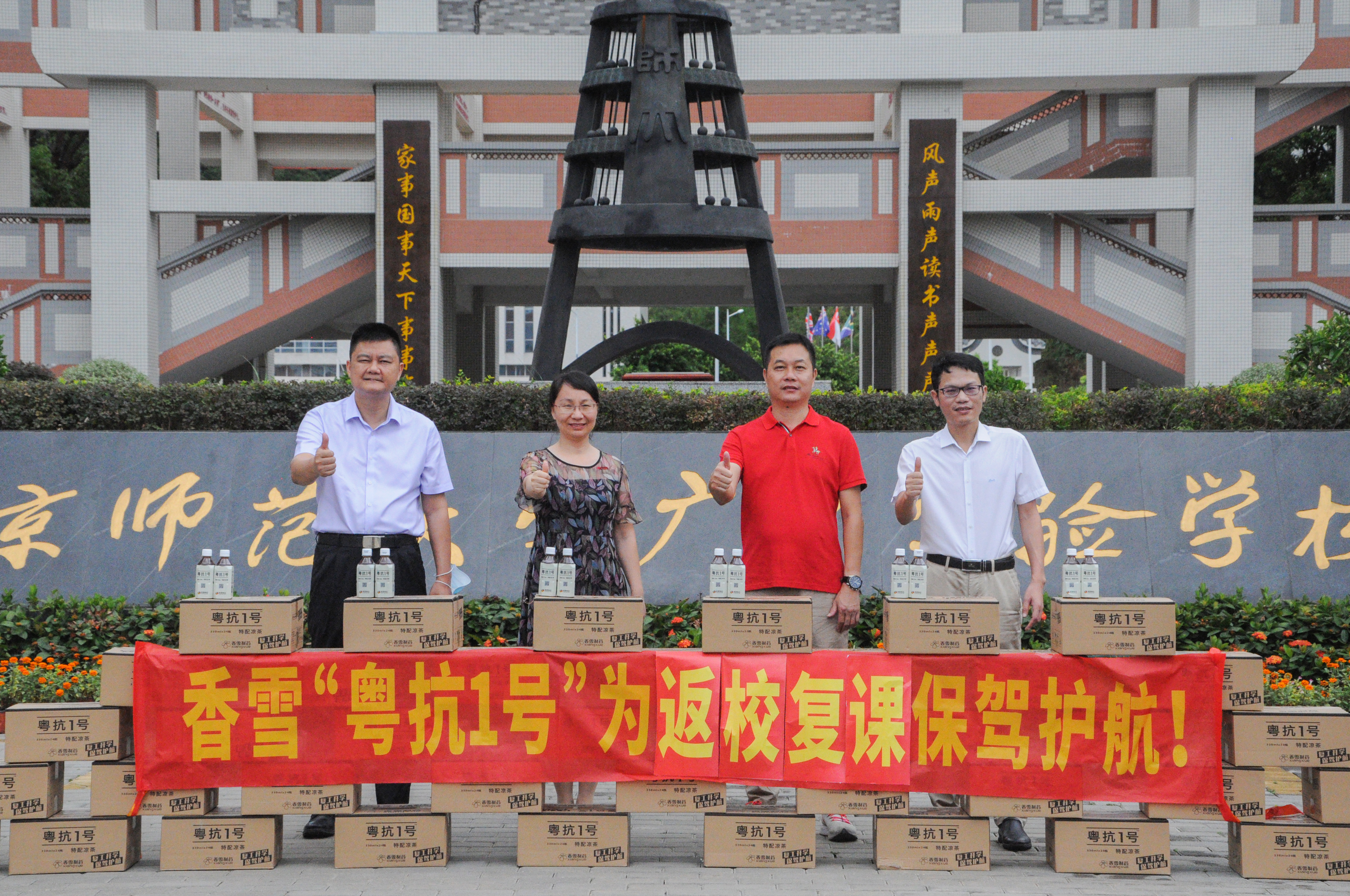 为助力进一步巩固疫情防控成果,保障校园师生健康,8月1日,ylzz总站线路检测中心通过广东省大爱相髓慈善基金会向北京师范大学广州实验学校捐赠了粤抗1号凉茶一批,助力学校做好常态化疫情防控工作。北京师范大学广州实验学校校长助理张华、副校长史剑,ylzz总站线路检测中心市场总监李柳军、广东省大爱相髓慈善基金会副会长黄敬廉参加捐赠仪式。